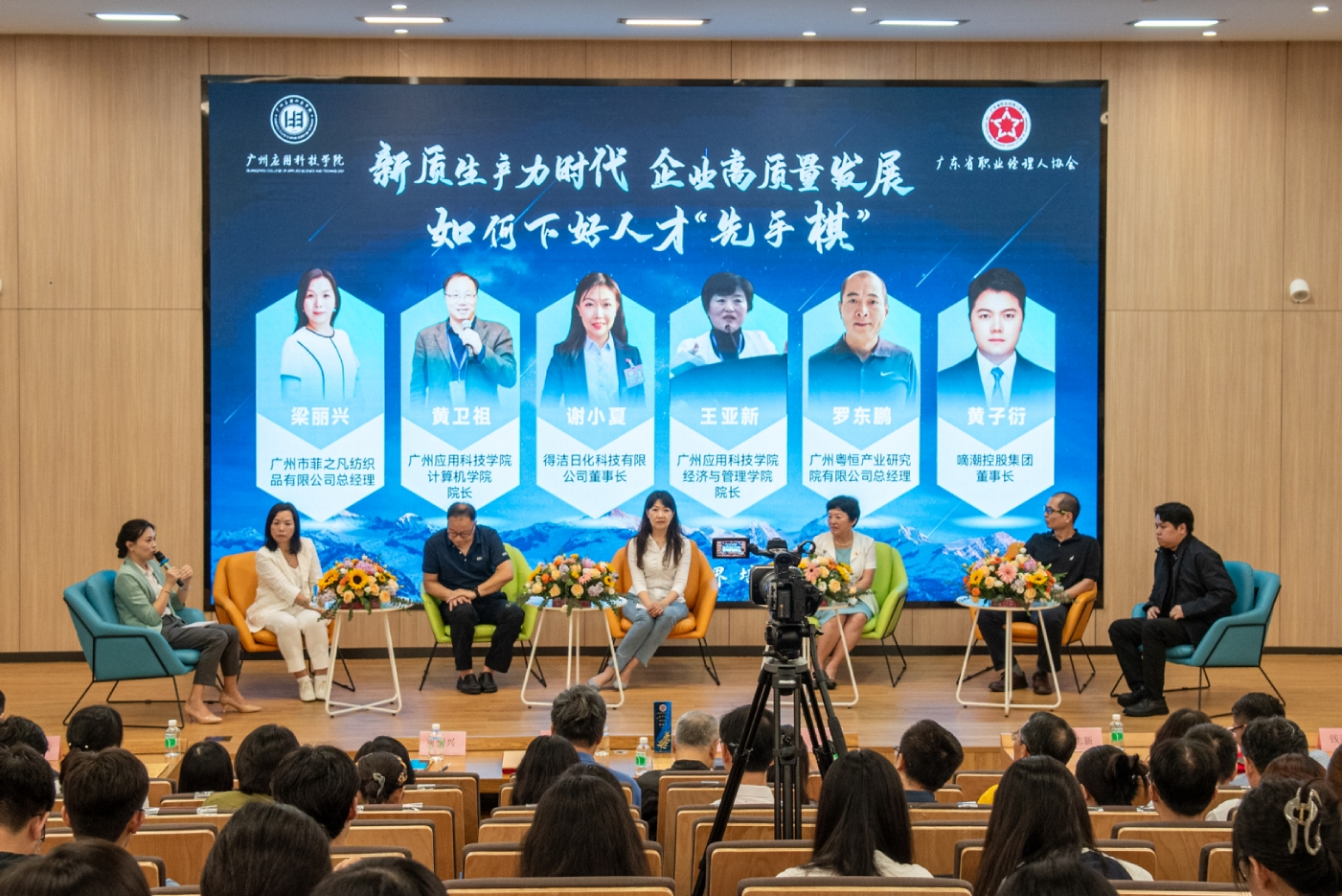 活动现场还为师生提供与企业面对面交流的机会,举行了“产教融合探新路 跨界培养谱新篇”圆桌论坛。来自协会、部分广东民营企业负责人以及学校老师围绕“新质生产力时代:企业高质量发展,如何下好人才先手棋”展开讨论。