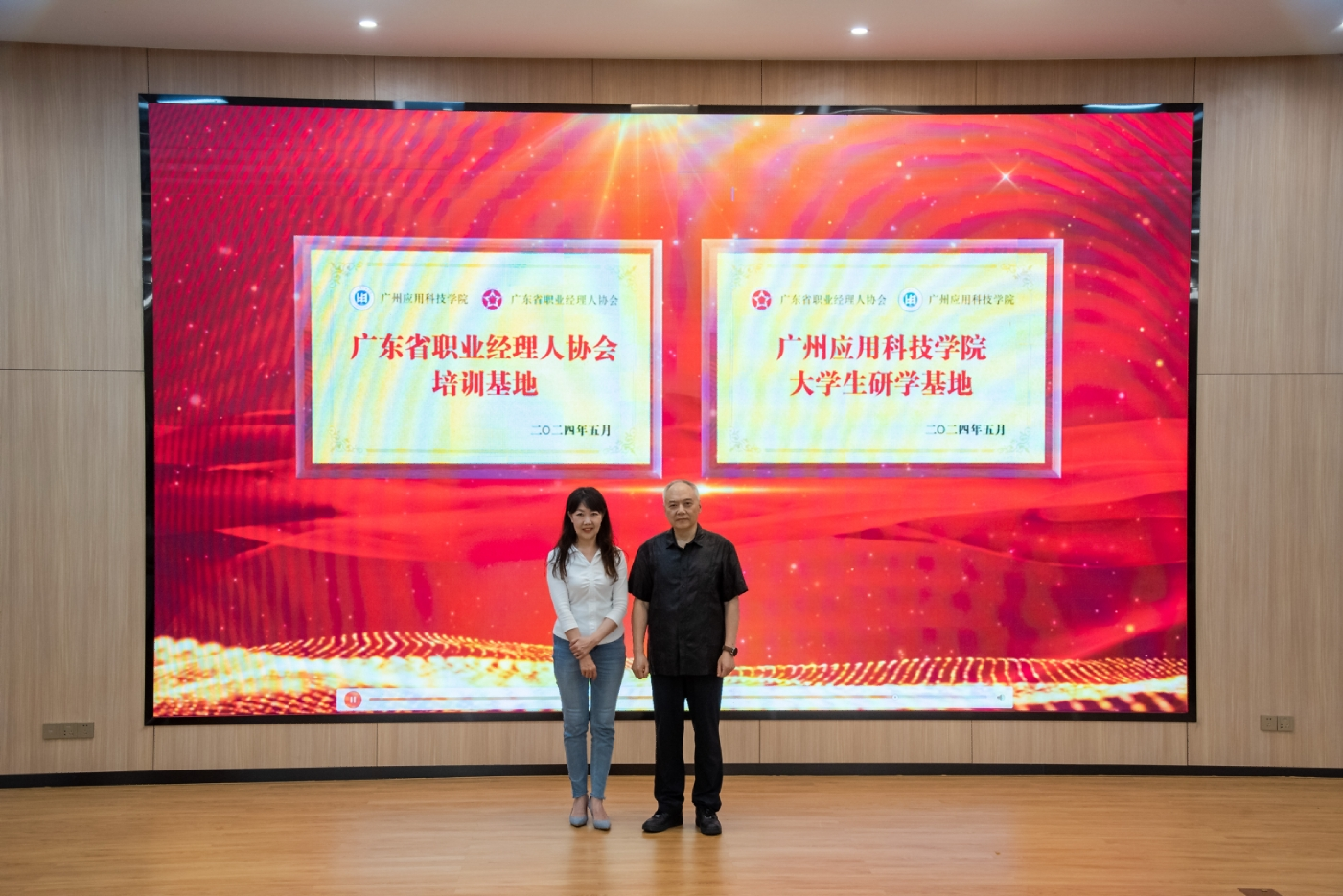 仪式现场,该协会在广应科建立“广东省职业经理人协会培训基地”,以及广应科在该协会建立的“大学生研学基地”正式揭牌,校协双方将持续促进产教深度融合,推动学校应用型人才培养模式的持续改革,赋能企业服务广东新质生产力的发展。